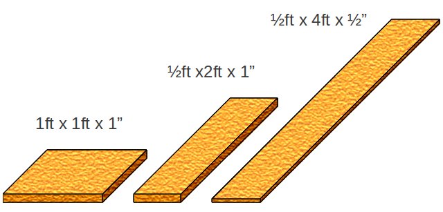 „Ameerika Ühendriikides mõõdetakse metsamaterjali ühikutes, mille nimeks on board foot* (BF). Board foot on ühe jala laiune, ühe jala pikkune ja ühe tolli paksune. Pliiats, paber ja elementaarne algebra võimaldavad kergelt välja arvutada suvalise staabeldatud lauamterjali koguse BF-ides.**
