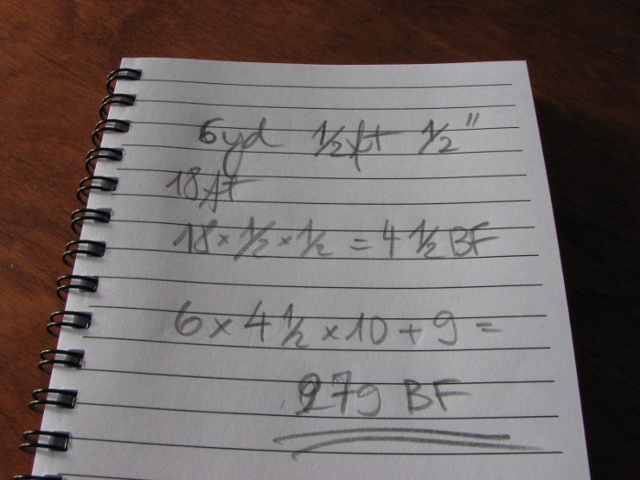 Kui needsamad lauad on näiteks 6 jardi pikad (18ft) ja et 4 jalga annab 1BF,