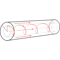 Ferrofluid flowing down a pipe is predicted to form either clockwise or counterclockwise swirls at the center of the pipe, and axial motion at the edges.