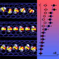 A temperature induced phase transition occurs in water molecules packed single-file inside a carbon nanotube, as shown by photoluminescence measurements and first-principles calculations.